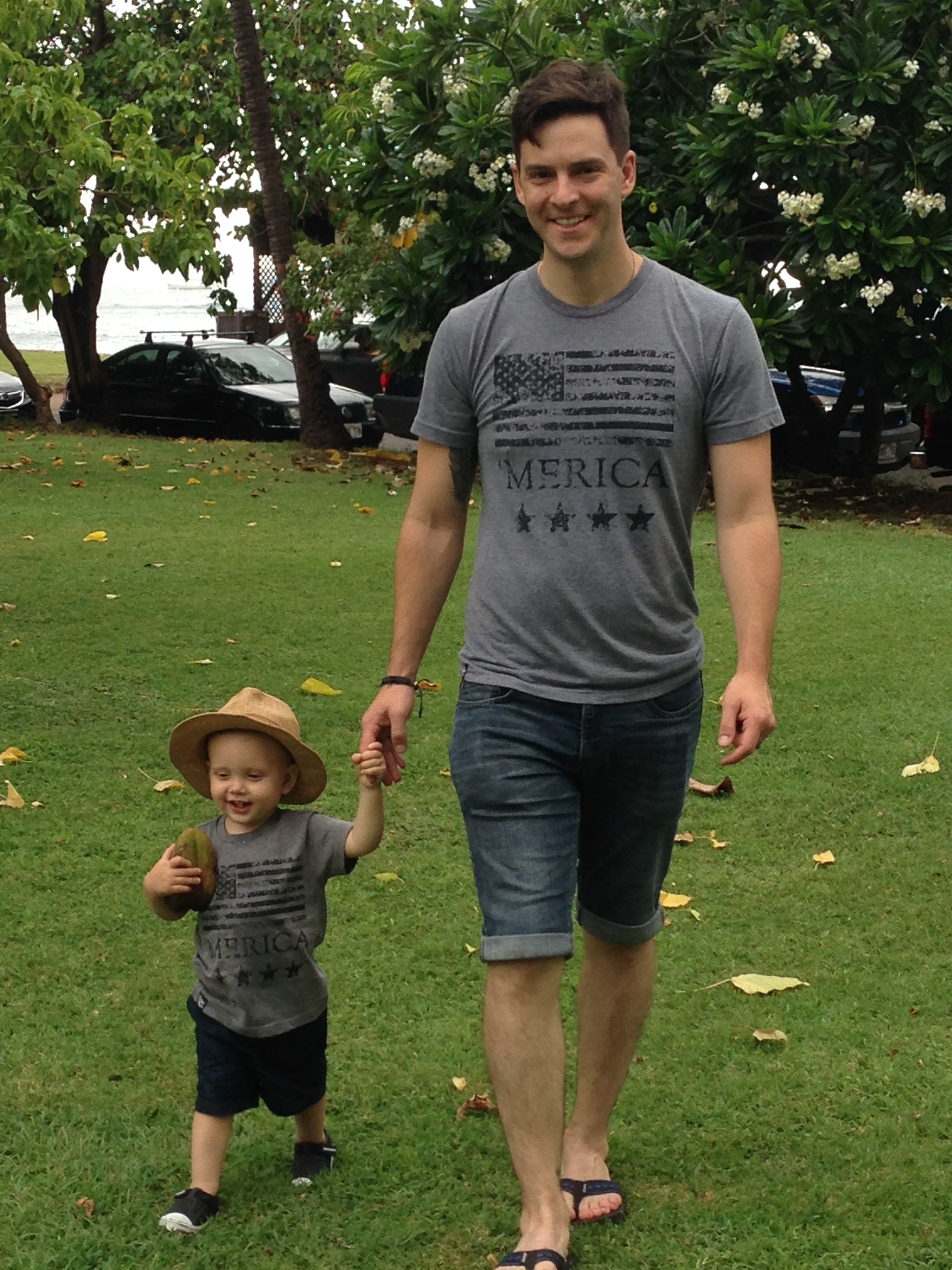 Thanks to so many modern brands realizing how fun it is to match your family, without looking like a moron, there are so many options for looking good while matching. My current favorite is Sly Fox Threads. Their designs are awesome, and they have mom, dad and baby clothes that are all awesome. Here’s a pic of my dudes in Maui, matching as my men should.